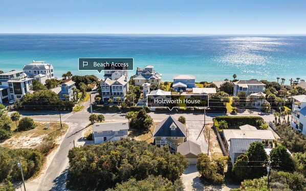 Holzworth House er komfortabelt og praktisk beliggenhet på Scenic Highway 30A, og har to boarealer for åtte gjester. Denne egenskapen drar fordel av den ettertraktede utsikten over Gulf og fylkesveien med andre plan og tredje etasje.