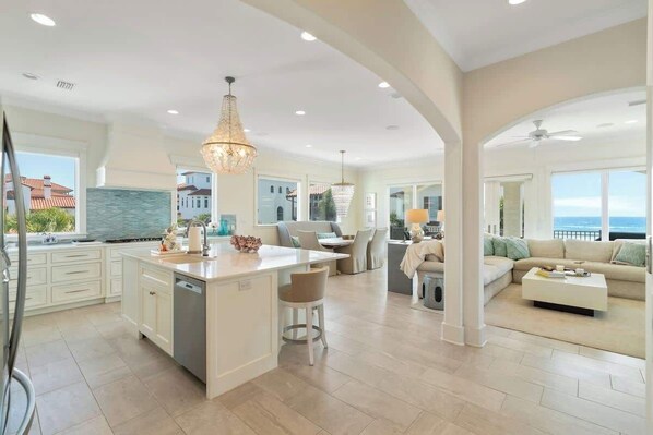 Chef’s Kitchen – Outfitted with high-end appliances, premium finishes, and everything needed to prepare gourmet meals or beach-day snacks.