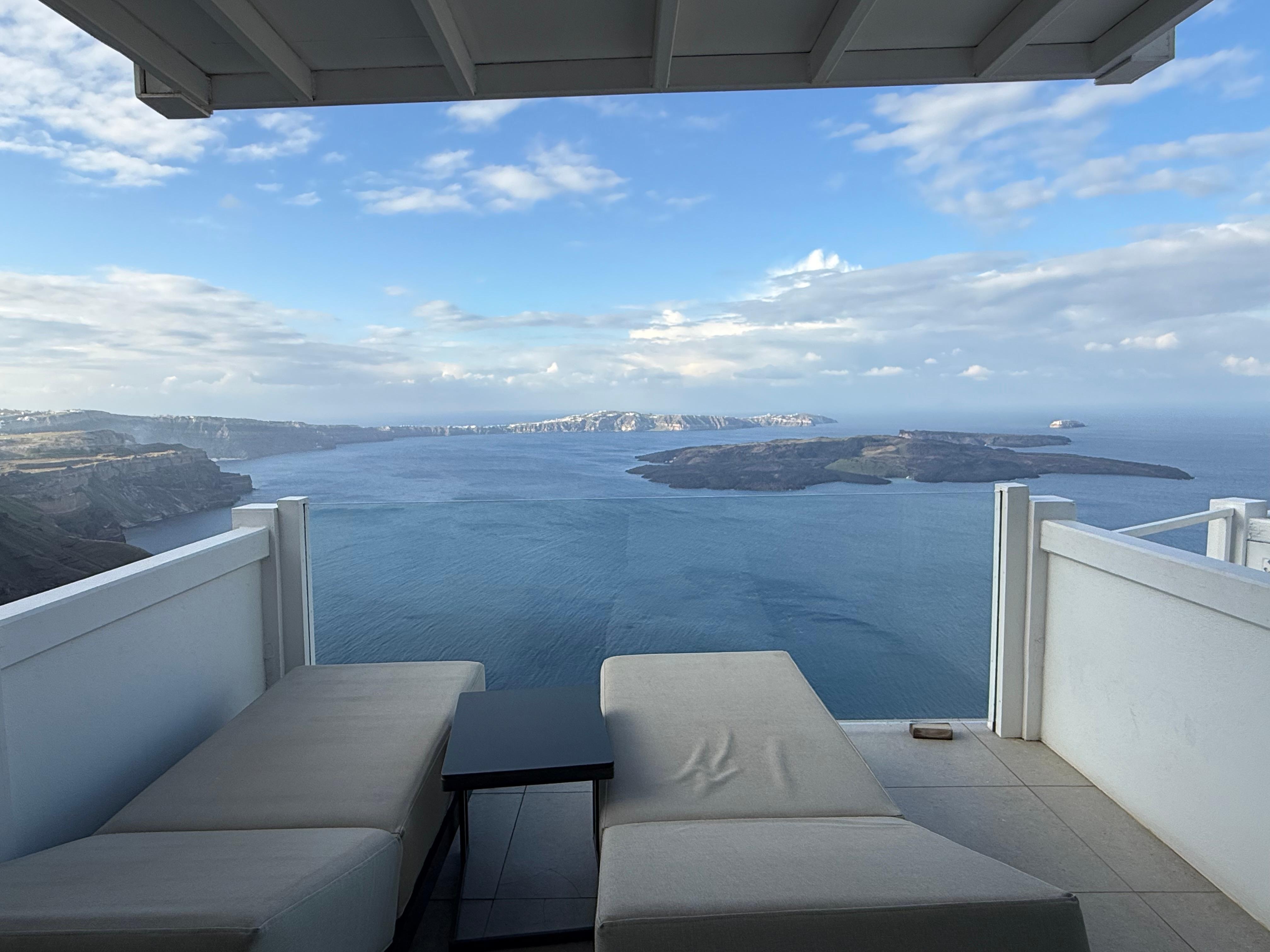 The staff of the hotel and Q bar / restaurant were phenomenal. The room was nice but the view was not quite as good as the photo. Our room was set back too much on the cliff. Santorini is not a place to save money. Get the best room and view you can.