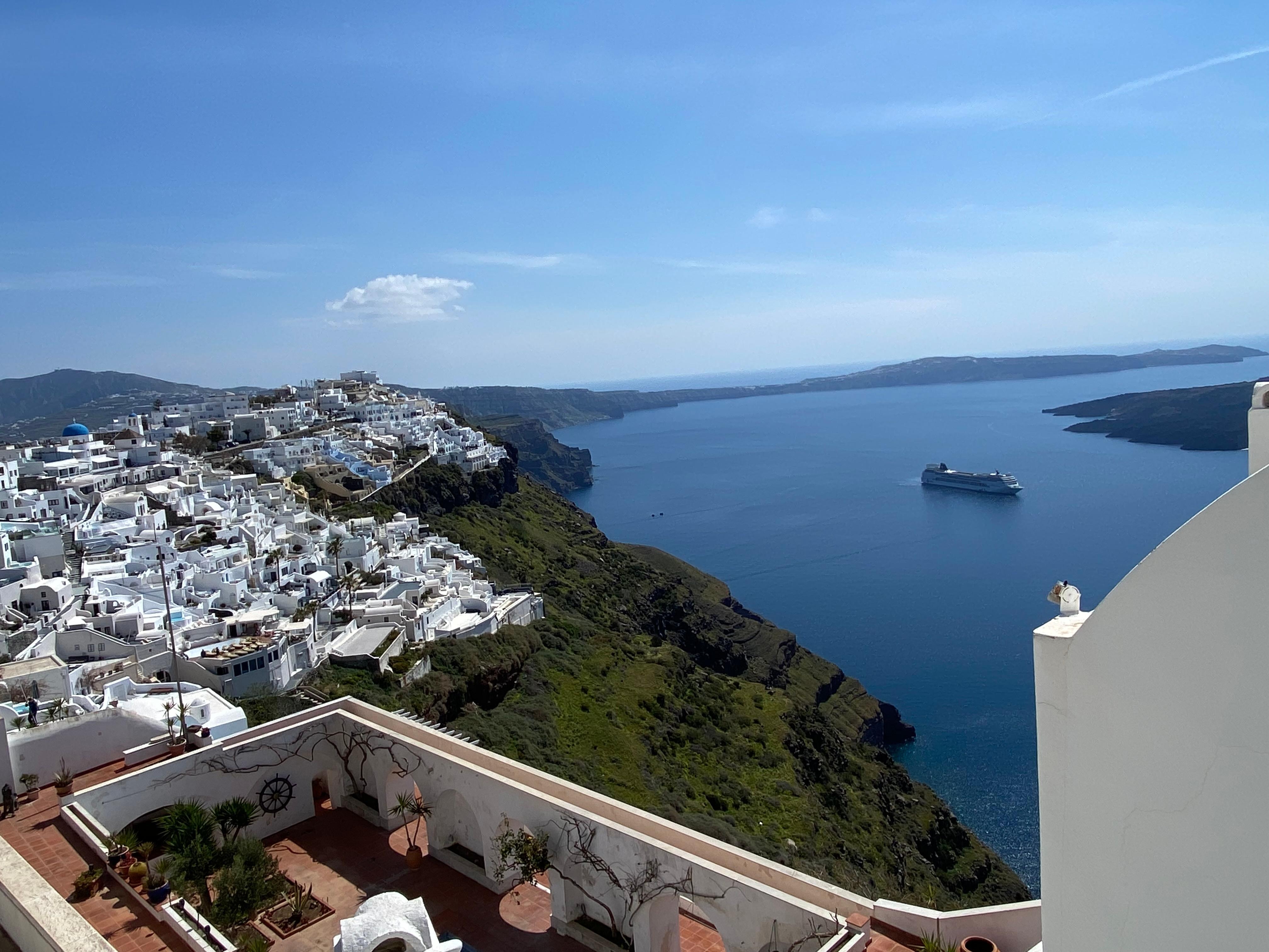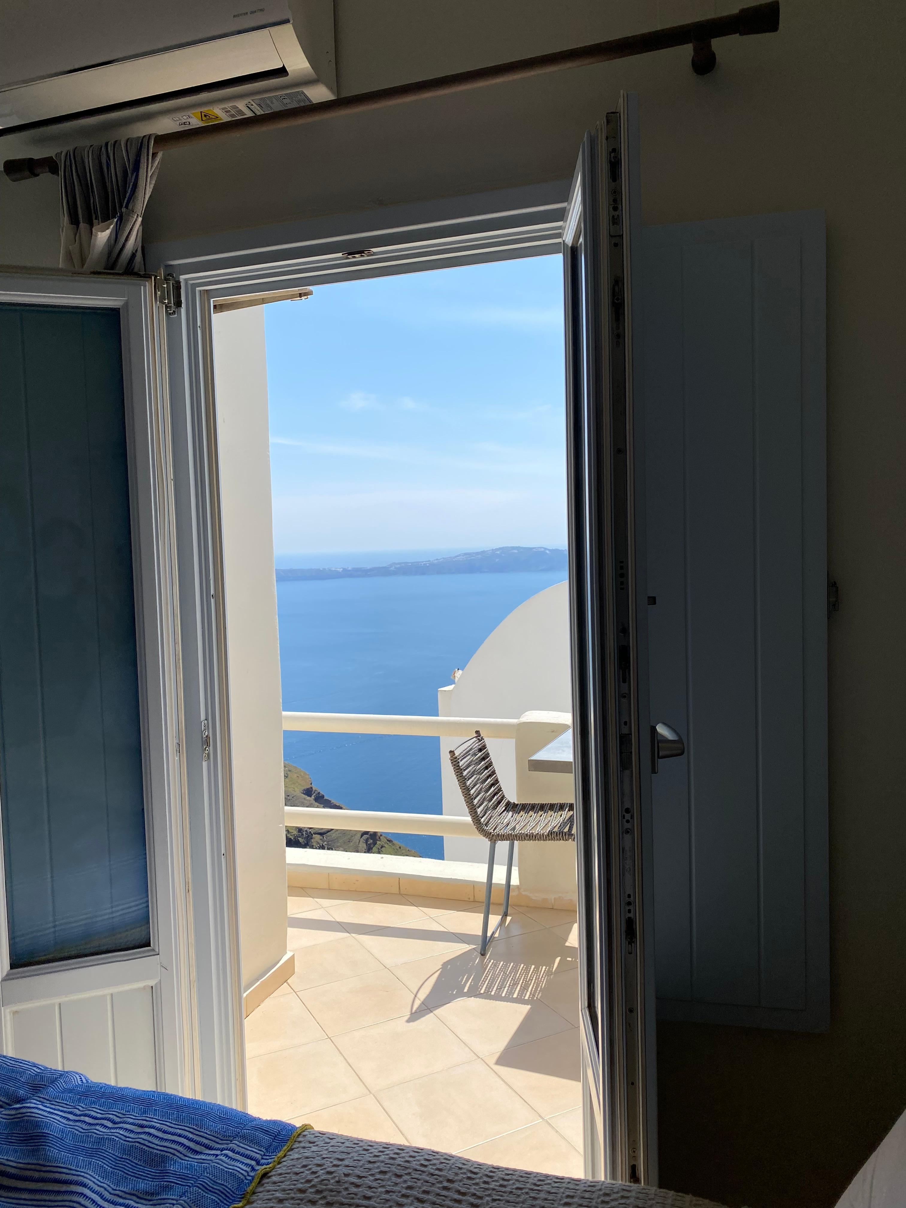 The view from our balcony was more spectacular than any view we saw in Santorini. Service and accommodations were equal to a five star hotel. Highly highly recommend.