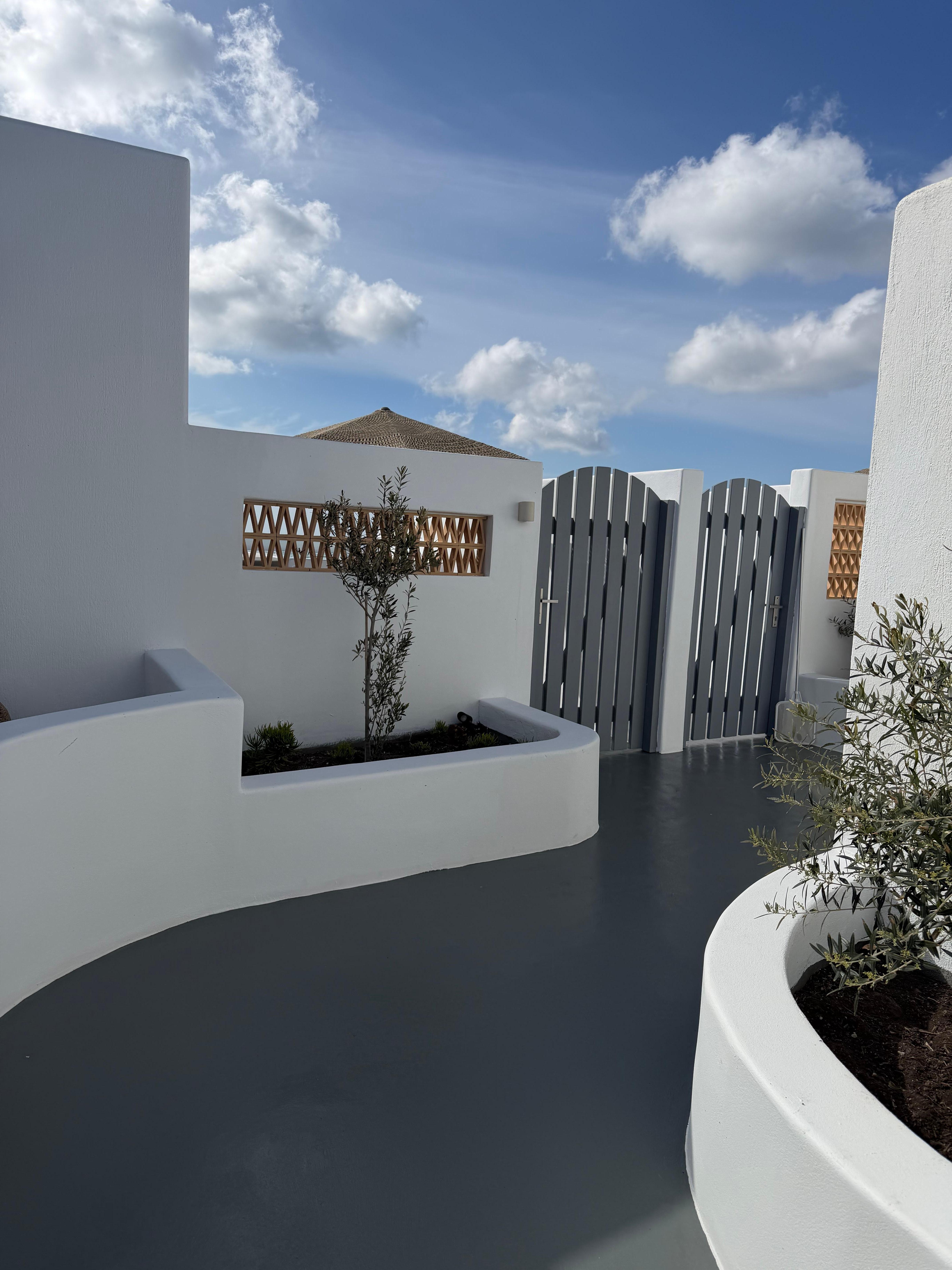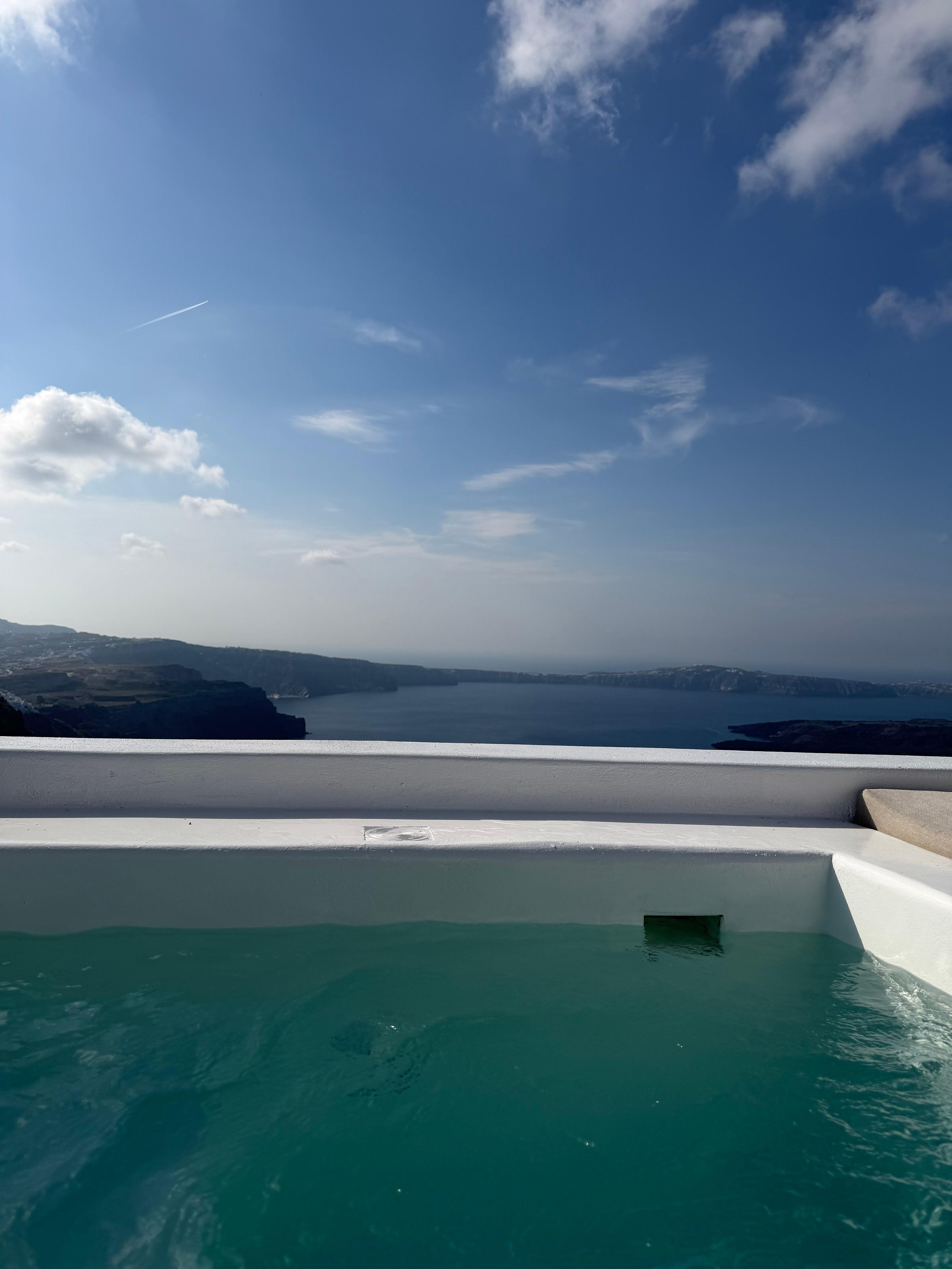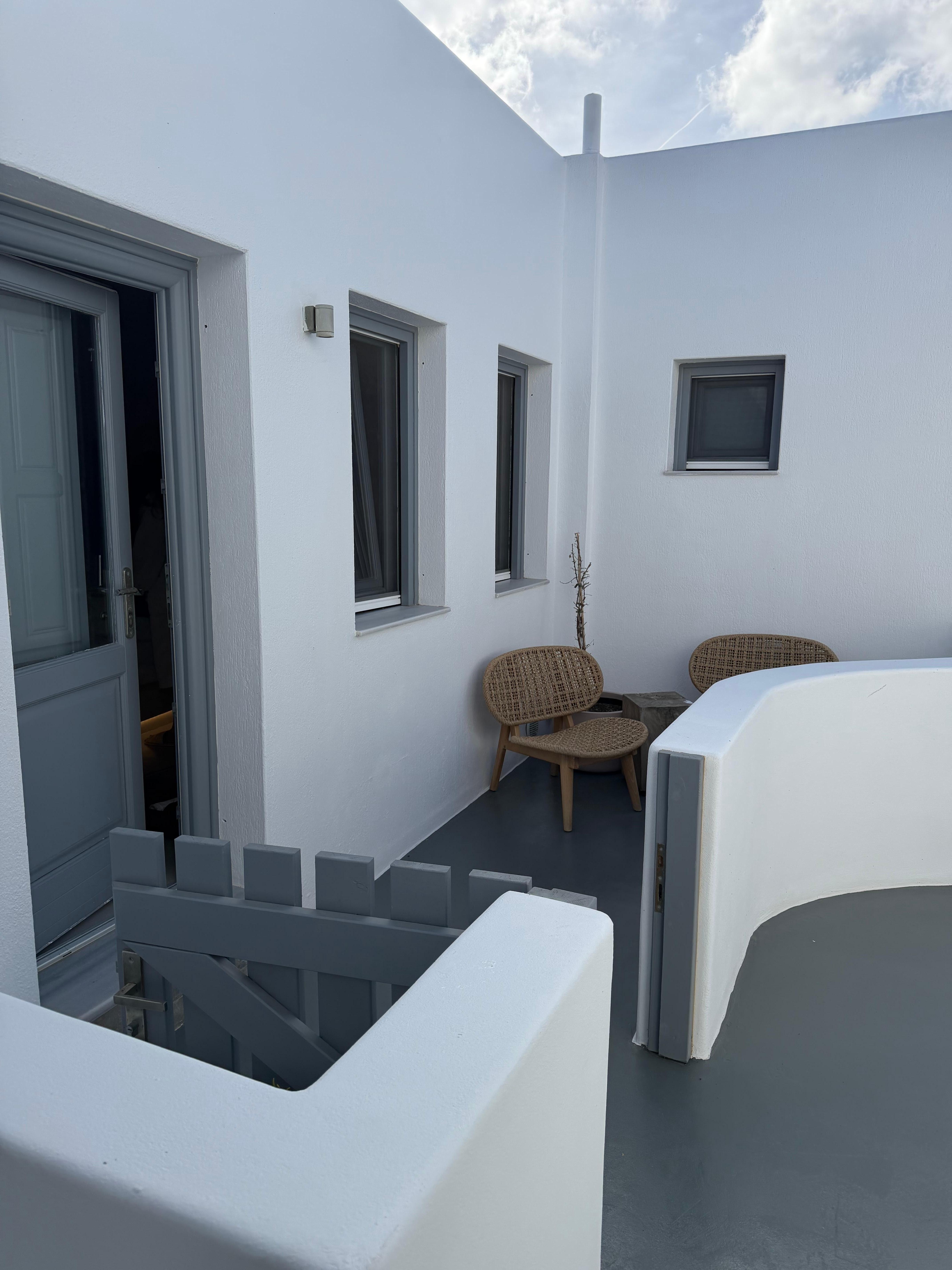 We stayed our final night of our trip here and it was the perfect end to our trip! Our hot tub and view were amazing, the staff was extremely helpful and it was perfectly located so that we could easily walk to lunch, dinner and Skaros rock! We had an early flight and we were going to miss breakfast so they were kind enough to bring us some snacks in the evening for us to enjoy in the morning before our early flight! A great stay and would highly recommend for a beautiful view and an easy trip!