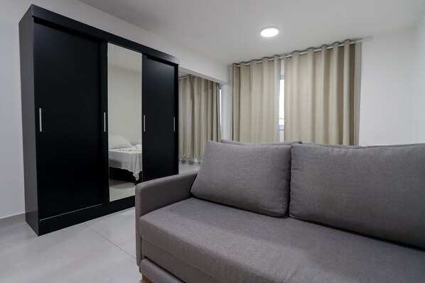 O studio conta com 2 camas de solteiro, um sofá cama de casal, microondas, cooktop, panelas, geladeira, mesa, roupa de cama/banho, shampoo e sabonete liquido. O prédio conta com lazer completo: Piscina, jacuzzi, solarium, quadra esportiva, espaço coworking com wifi, academia, brinquedoteca e sala de jogos. Obs: não conseguimos garantir o uso das áreas de lazer do prédio pois há manutenções imprevisíveis.