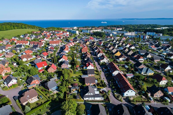 Leiligheten ligger i en enebolig i en rolig utkant av Sassnitz. Bra utgangspunkt for fotturer og sykling i Jasmund nasjonalpark. Shoppingmuligheter ligger i nærheten. Avstand til sandstranden 6 km, til fergeleiet 4 km, til jernbanestasjonen / RPNV 0,8 km. Sassnitz er et "statsgodkjent feriested" og derfor Kurabgabepflichtig.