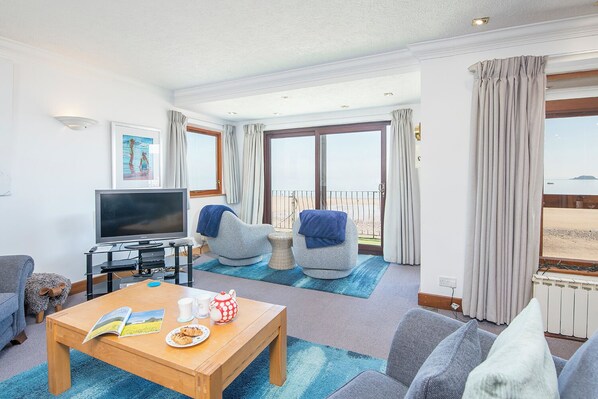 Leilighet med havutsikt, beliggenhet foran stranden, WiFi og parkering