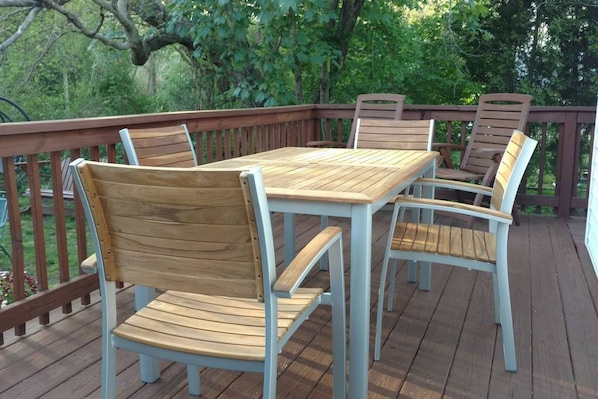 Feriebolig med terrasse ved en elv i Saunderstown
