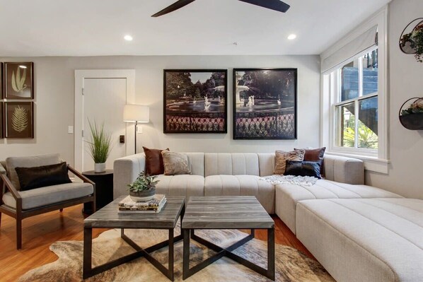 This cozy condo in the historic district can comfortably fit up to 3 guests with its 1 bedroom, 1 bathroom and is a walkable location to Savannah’s historic downtown. Fully stocked with modern amenities and featuring a back patio, this home is perfect for those exploring Savannah. The professionally designed spaces offer open-concept layouts and kitchen & dining spaces perfect for entertaining.
