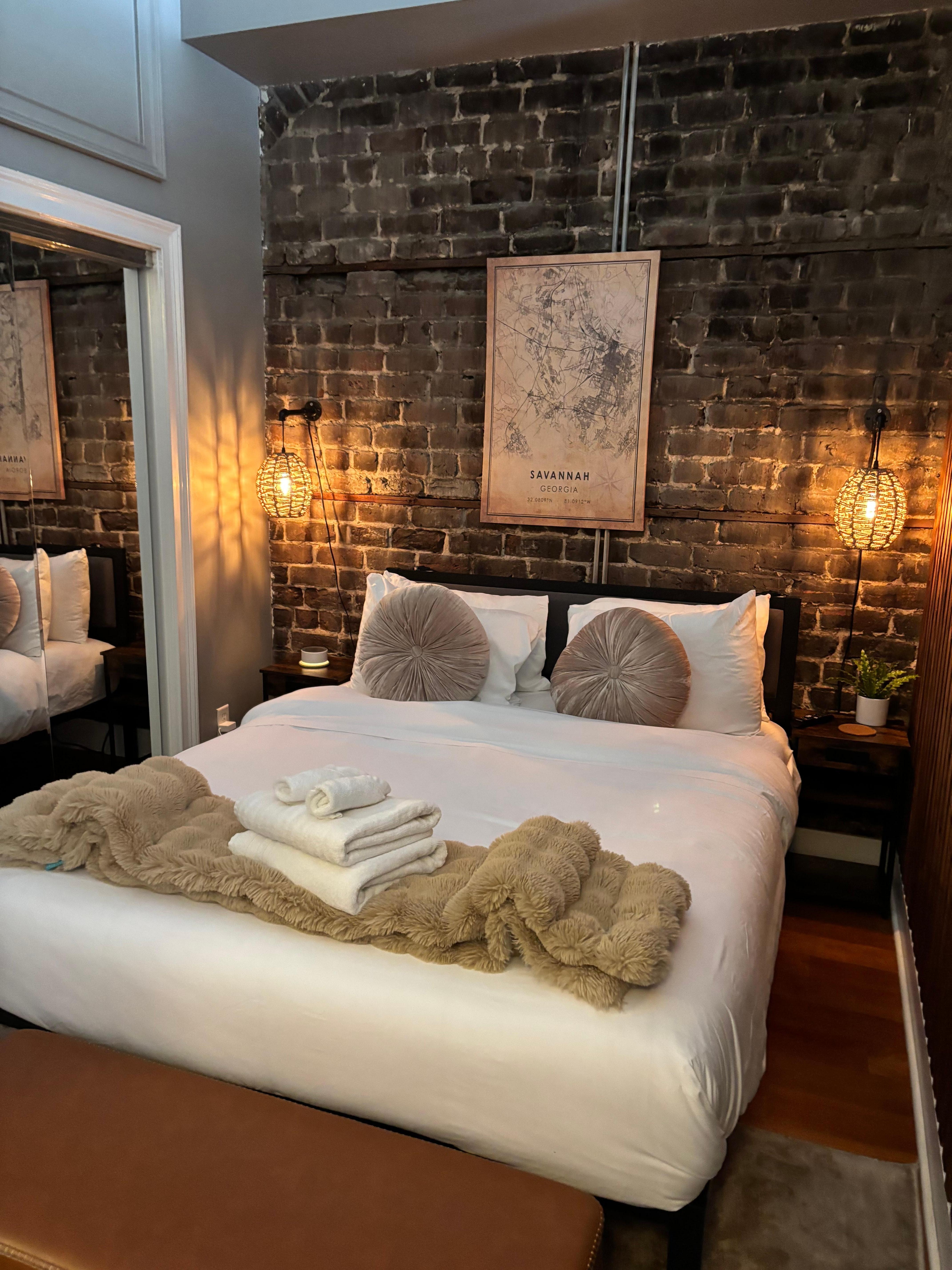 Located on iconic Broughton St. in the heart of Savannah, The Broughton Noir blends modern elegance with historic charm. Perfect for up to four guests, it features a plush queen bed and a comfortable pull-out sofa. Recently updated, the loft boasts high-end amenities in a sleek, moody design. Immerse yourself in Savannah’s vibrant downtown, with dining, shopping, and top attractions just steps away. Experience the perfect mix of style, comfort, and convenience in this exceptional space.