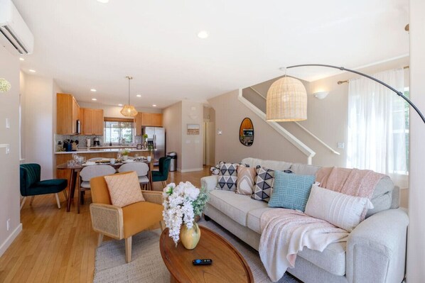 The home is tastefully decorated and fully equipped with all the amenities you need for a comfortable stay.This is a 3-level single family house with some steps to the entrance.