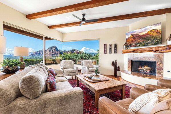 • Living Room - Spacious seating area with Smart TV, telescope for stargazing & indoor natural gas fireplace
