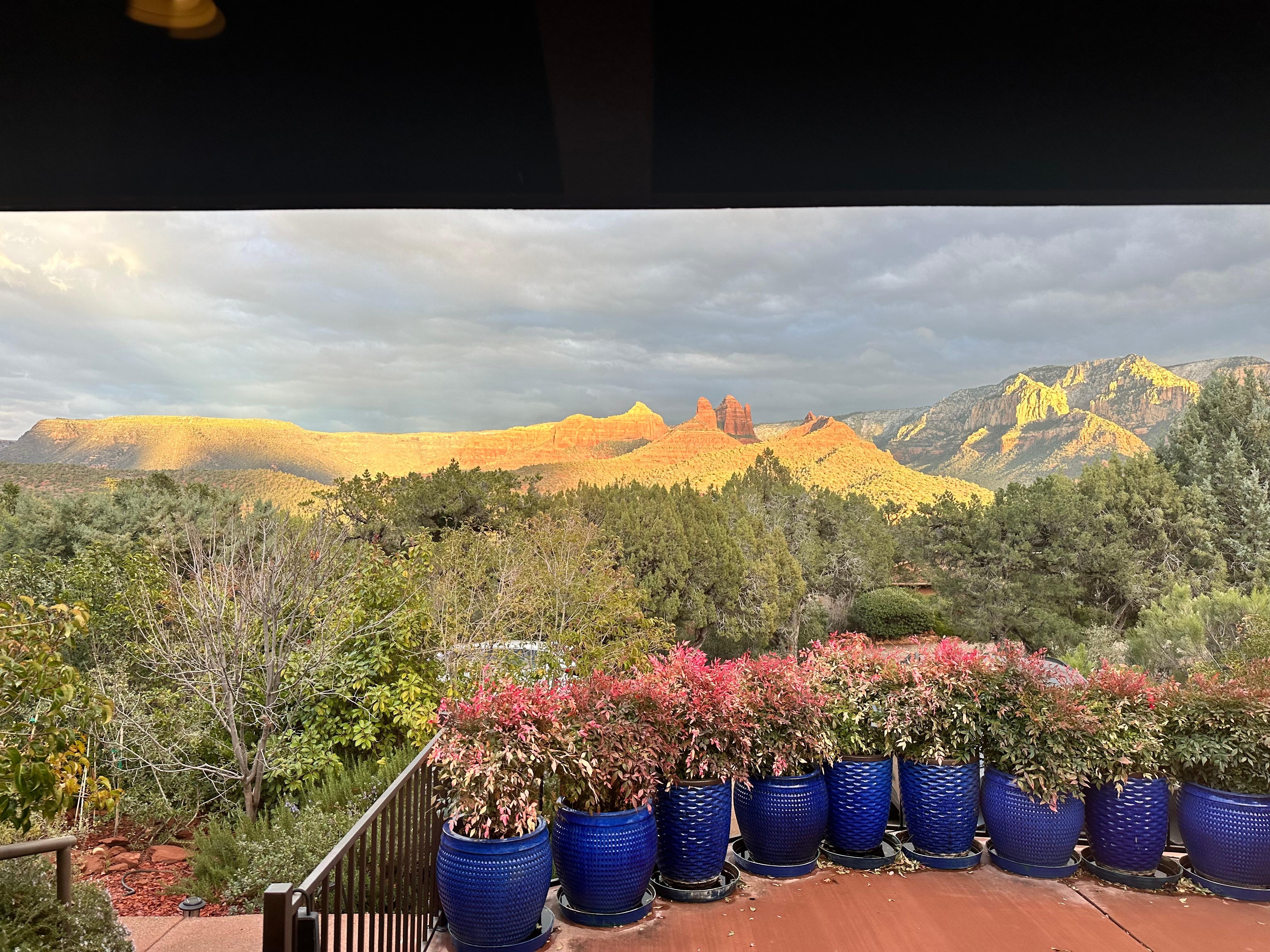 Det er en andre (delt) uteplass med forskjellige røde steinutsikt mot nord. Pass på å være på en av terrassene når de røde steinene lyser opp ved solnedgang. Tidlige morgener er også magiske, da vi står overfor i solen, stiger og morgendagens symfoni er å meditere og re-koble med produsenten din.