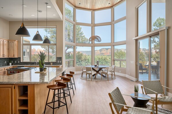 This house is easily the nicest place we have ever stayed through VRBO. The pictures (which are beautiful) actually don’t do it justice. As soon as you walk through the doors, your jaw will drop - from the 20+ foot ceilings, the views, the chef’s kitchen, the pool / jacuzzi - everything is fantastic. We chose to alternate days with activities and it was a great decision - one day to the Grand Canyon, one day staying at home to relax, use the pool, and cook dinner, one day to Antelope Canyon / Horseshoe Bend, one day at home. You will look forward coming home to this place every time. Jared, the property manager, was great to work with and provided several nice recommendations - restaurants, Pink Jeep tour, wineries, and other activities. Highly recommend this place and will definitely stay here again on our next trip to Sedona!
