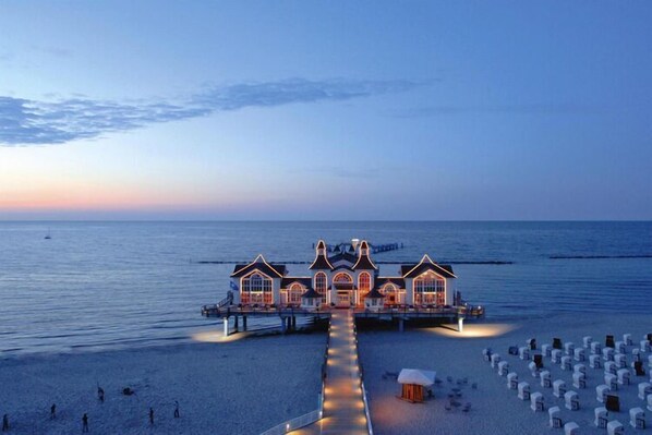 Det velholdte feriekomplekset i badebyarkitektur ligger 800 meter fra sørstranden til feriestedet Sellin ved Østersjøen. Sellins landemerke og hovedattraksjon er uten tvil den 400 meter lange brygga med restaurant. Opprinnelig bygget i 1906, ble den ødelagt to ganger i løpet av årene før den ble fullstendig revet i 1978. Den nye bygningen ble bygget på 1990-tallet etter den gamle modellen og siden 1998 har den igjen reist seg stolt over havet. De lyse hvite husene i ferieparken gir ferien noe ekstraordinært. Transport fra jernbanestasjonen i feriestedet Binz i Østersjøen til Seepark Sellin kan tilbys mot et gebyr og etter forhåndsregistrering. Den nyutviklede marinaen ligger i bydelen Seedorf i Sellin, men den gamle sjøfartslandsbyen Seedorf er en ekte fryd for øyet, ikke bare for sjømenn, men også for landkrabbe. Høydepunkter: Alle gjester får en helårsrabatt på 25 % på inngangsbilletten til AHOI Rügen bade- og eventyrverden med spakortet Alle forbruksavhengige energikostnader inkludert WiFi inkludert Omfattende babyutstyr inkludert Kabel-TV med Sky-mottak (oppdagelse), Kino-TV i alle apper. inkludert Aktiviteter i nærheten: AHOI! Bade- og eventyrverden med 100 m lang vannsklie, strømningskanal, solebukt, utendørsbasseng, barnebasseng med sjørøverskip samt boblebad og et variert badstulandskap med 6 ulike temabadstuer. En båt og SUP-utleie samt en surfeskole ligger i landsbyen. Eller ta en eventyrtur på Rasende Roland, som også stopper ved Seepark Sellin. Med denne historiske smalsporede jernbanen kommer modelljernbanedrømmer til live. Med rolige 30 kilometer i timen kjører hele familien til neste kaffe i en av de andre byene på Rügen og oppdager den vakre øya Rügen. Merk: Fra 10. november til 21. november 2025 vil AHOI-bade- og eventyrverdenen være stengt på grunn av vedlikeholdsarbeid.