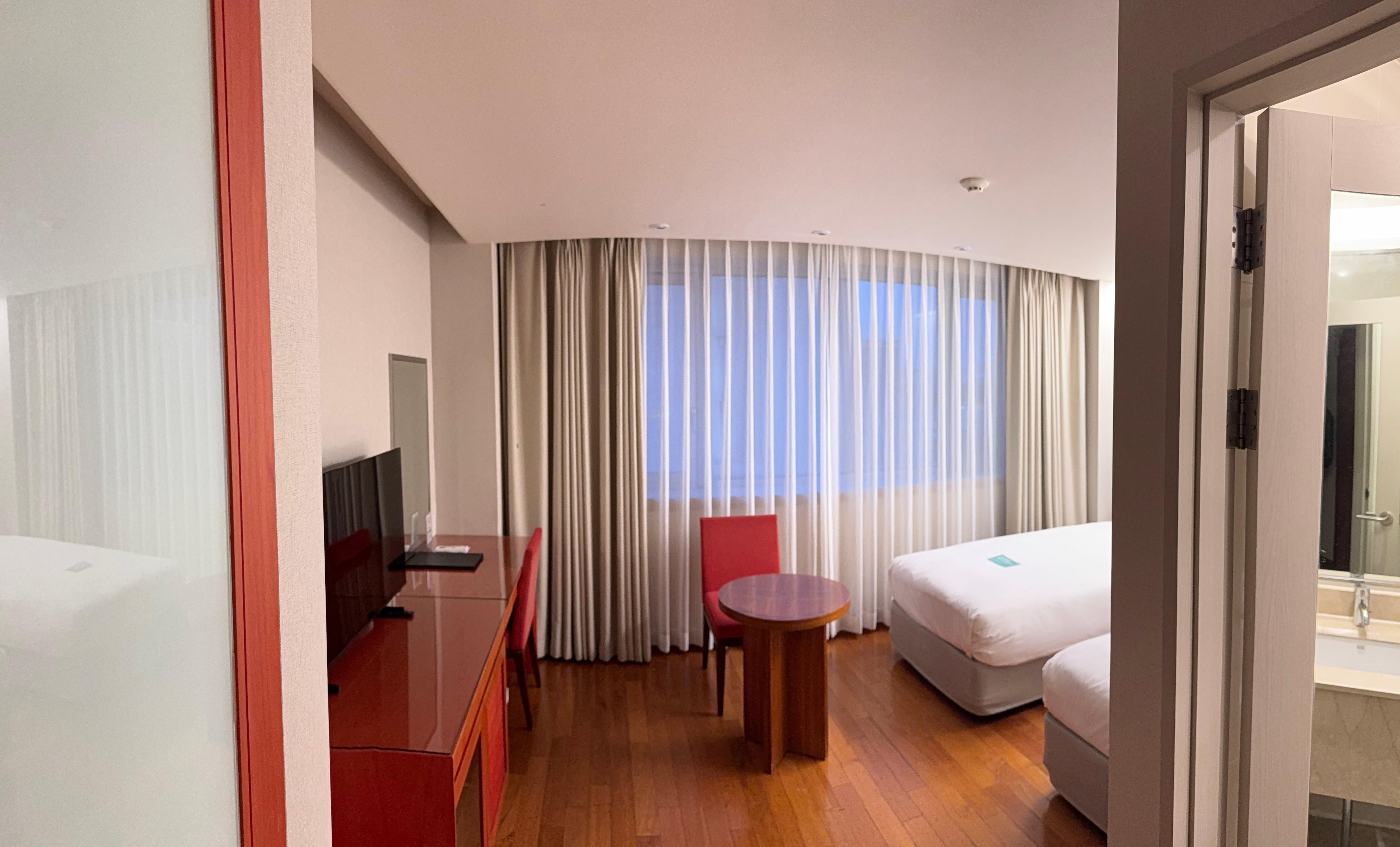 Staff is friendly, housekeeping is sometimes a miss, they would forget to place complimentary water bottles for me one day or they’ll forget to provide the bathroom necessities such as the shower cap, cotton pads, and cotton swabs. Had to ask the front desk for them but the front desk was nice and asked me to wait in my room and then the front desk staff gave me three of each.
