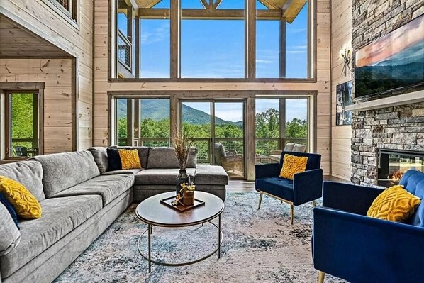 Step inside and be greeted by an open-concept living room that's a masterpiece of design and comfort. Towering floor-to-ceiling windows not only bring in an abundance of natural light, but also showcase the Smoky Mountain panorama like a living painting. Plush sofas and armchairs, strategically placed to capture both the warmth of the fireplace and the majesty of the mountain views, invite you to sink in and unwind. You will also find 5 bedrooms that are havens of comfort and style. Downstairs, you’ll find the game room and theater room where you can indulge in the pleasures of entertainment within the confines of your own cabin. Fully equipped kitchen and adjacent dining area - the perfect spot to prepare hearty meals and enjoy them with your loved ones; Free WiFi