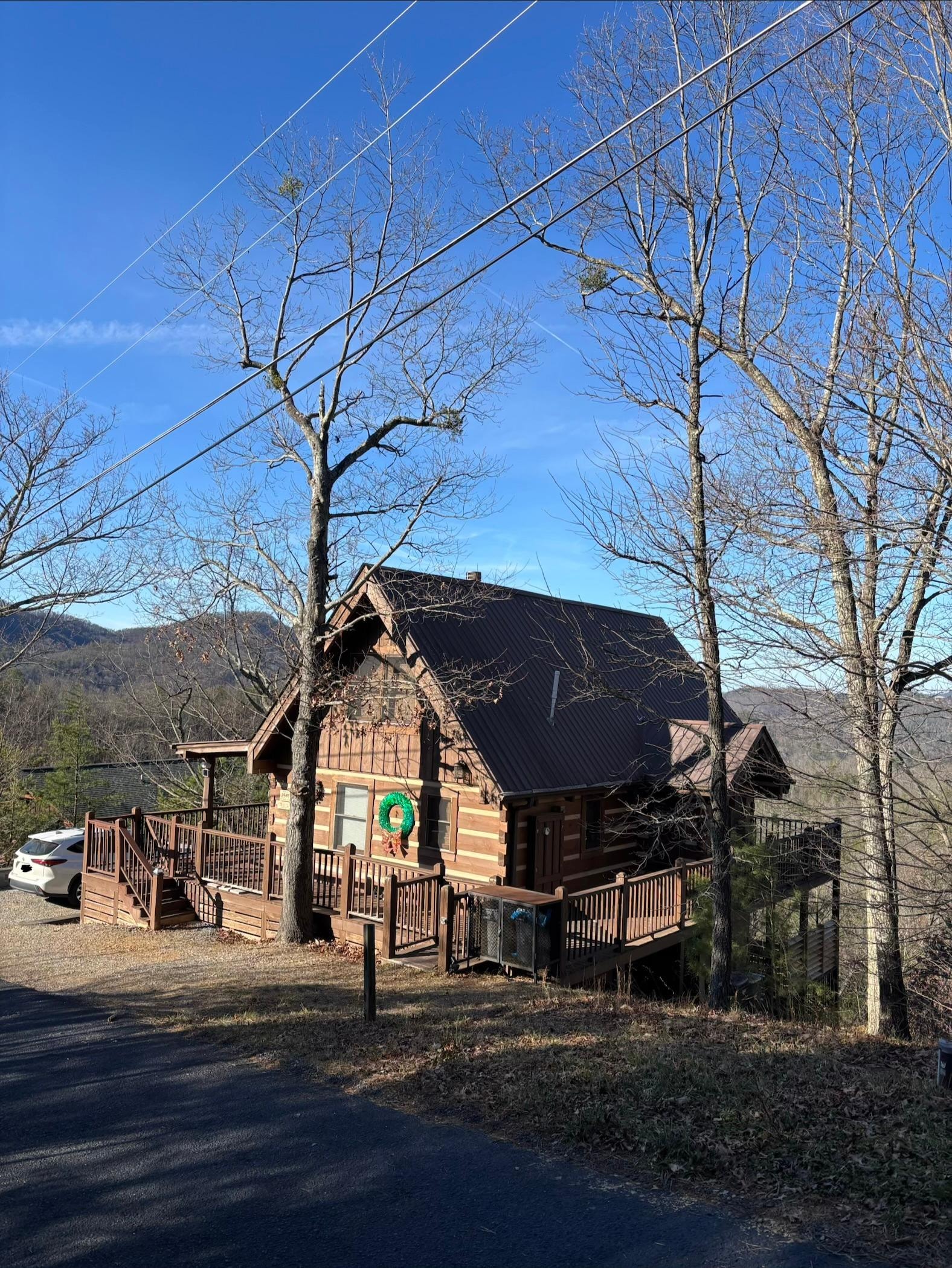 EN PANORAMISK MAJESTISK MOUNTAIN VIEWS FRA DENNE 3BR / 2bedroomd 2BA MED LOFT TRUE LOG CABIN LOCATED IN WEARS VALLY! Du må se denne for å tro på den fantastiske innstillingen den har å tilby. Interiørfunksjoner inkluderer en romslig stue med åpen planløsning, hvelvede tak med vegger av glass, tregulv, trevegger og tak etc. Stue har en stein gasspeis for å slappe av. Romslig fullt utstyrt kjøkken med snackbar, rikelig med skap plass og spisestue. Soverom og bad på hovednivå. Hyggelig loftområde oppe med to enkeltsenger. Full ferdig kjeller med oversize spillrom med biljardbord, andre soverom, og