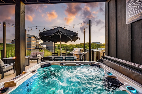 Scenic decks with hot tub, grill & outdoor fire table