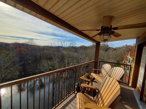 Less than 1 mile from all the dining and entertainment Pigeon Forge Pkwy has to offer. With panoramic views of the Great Smoky Mountains from your private balcony, you can enjoy both being in the action and enjoy the views. With beautiful sunset mountain views, you can enjoy amenities that are only minutes away or ride a shuttle that picks up at the AppleBarn 1/2 mile away. While staying here you will have access to the Pool and Hot Tub (Memorial-Labor Day), Game Room, Gym, and Little Pigeon River.