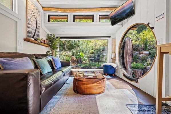 No smoking (cigarettes, marijuana, vape, etc.) inside of the tiny house. A $500 fee will be added to remove smoke odors. You may smoke outdoors.