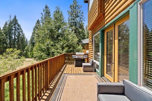 Step outside and enjoy the crisp mountain air by the gas fire pit, perfect for evening s’mores or stargazing under the pines. There's plenty of outdoor seating and space for everyone to relax after a day on the lake or the slopes.