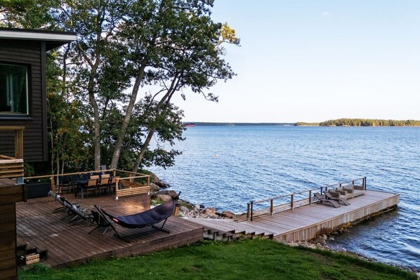 A newly finished Modern, Seafront Villa, situated just 33km from Helsinki city, built 20m2 from the coast offering beautiful sea views from almost all windows. With a 100m2 terrace and a 45m2 pier, complete with outdoor furniture, a jacuzzi, and a hammock for ultimate relaxation.