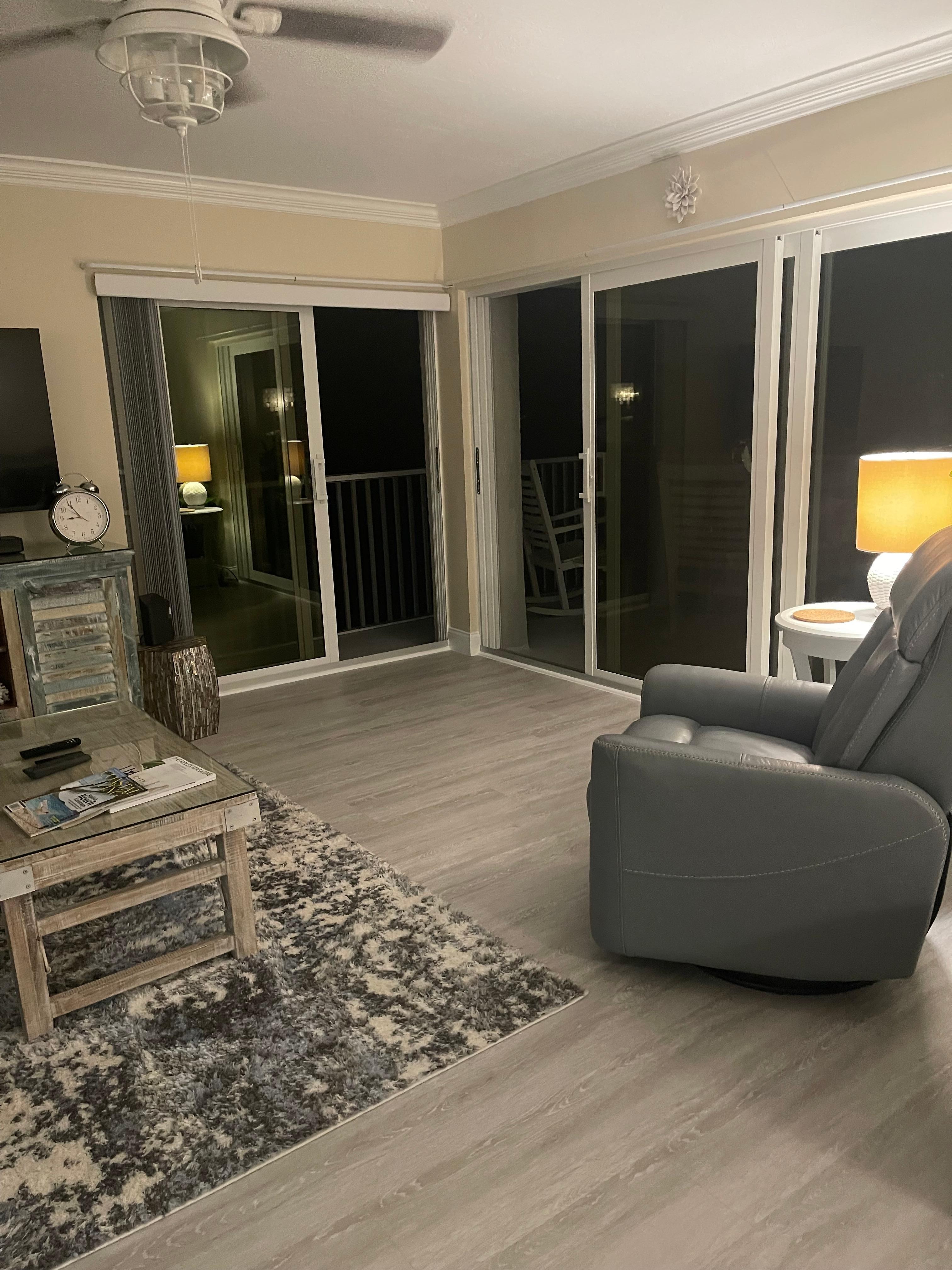 Kitchen: pull-out faucet, mosaic tile backsplash, quartz tops,under cabinet task lighting, stainless appliances w ice maker. leather swivel, rocker, recliner. 3 flat screen Tv’s Apple TV and our wifi extender extends to the BEACH!
