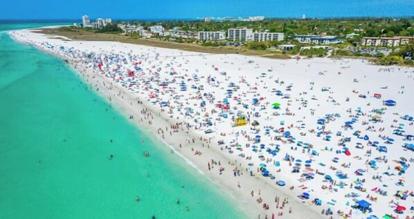 Leilighet med familievennlig profil med boblebad, 3 minutters gange fra Siesta Key offentlige strand