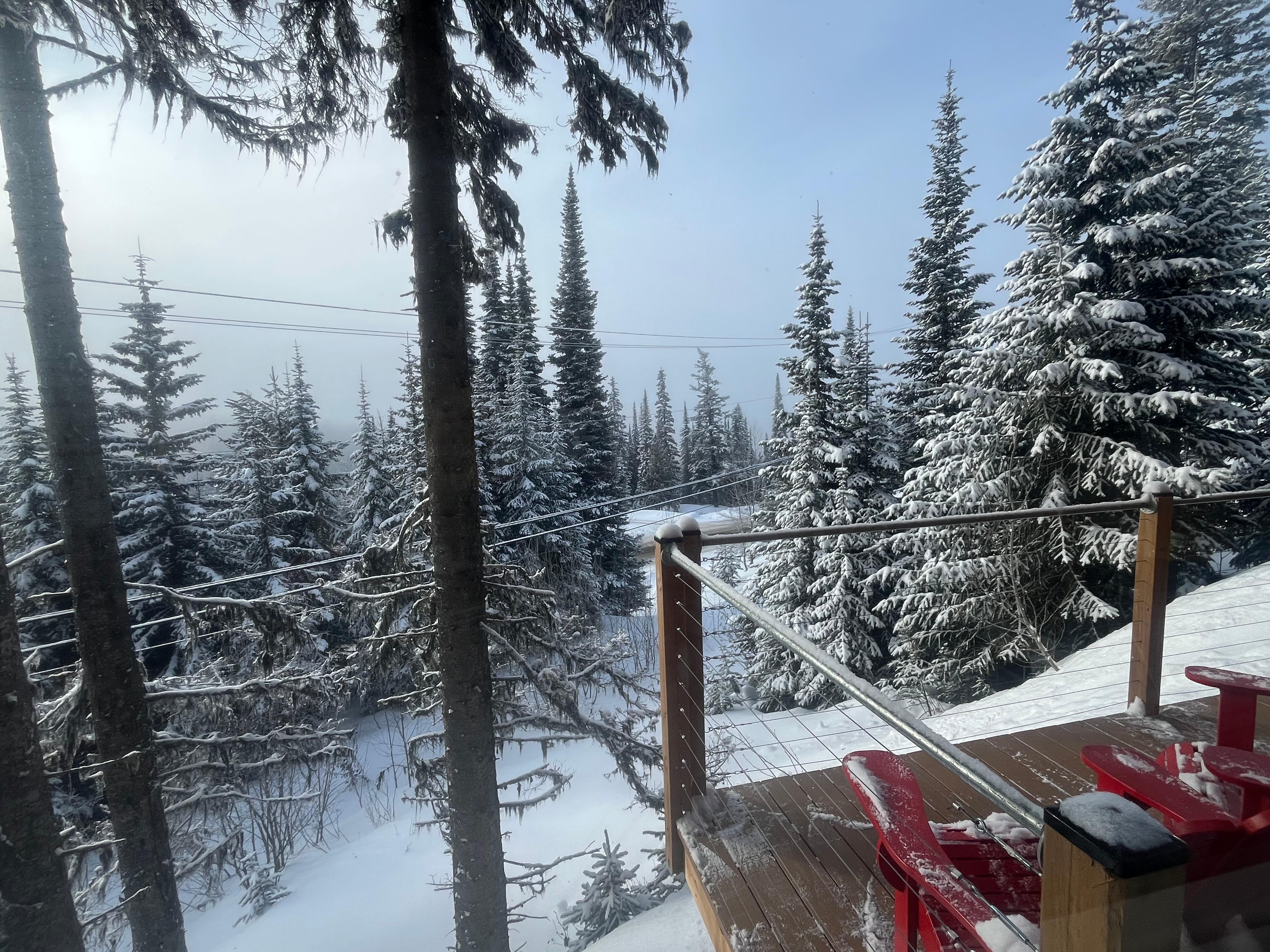 We stayed 5 nights great access to cross country skiing The suite is very nicely decorated the chairs outside with the cozy blankets are a nice touch, we enjoyed a glass of wine and a beautiful sunsetThe stairs up and down are not for the faint of heart but well worth it as the view from the balcony and windows is beautiful Look forward to coming back next year