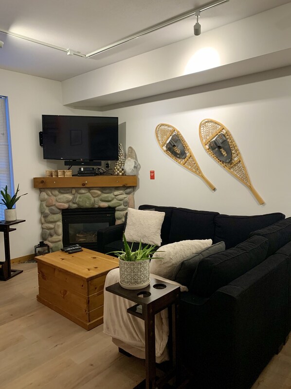 BONUS to our guests staying at this condo: Enjoy the extra-large common room on the ground floor. It features two sitting areas, a bookshelf full of books, a full kitchen, and a cozy gas fireplace. You can spread out and have a get together if you are traveling with other people, or with new friends you may make on your holiday.