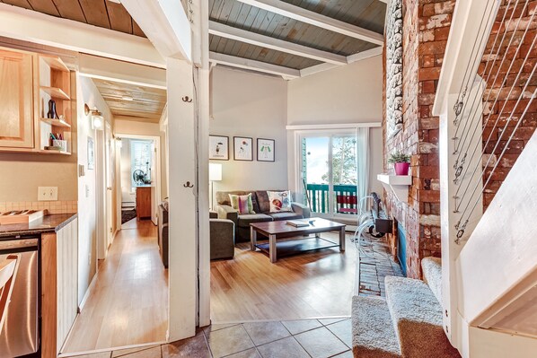 Opplev fjellene med denne unike, høye leiligheten med fantastisk fjellutsikt. Etter en dag med rekreasjon trekker gjestene seg tilbake til loftet for å slappe av og se på TV, mens støvlene tørker av din personlige bagasjerom. Gjestene vil ha tilgang til et delt basseng, badstue, boblebad og spillrom inkludert en Ping-Pong og biljardbord. Dette hjemmet er ideelt for et par, små familier eller en vennegjeng og har alt du trenger for et komfortabelt opphold i fjellet. Den private balkongen utenfor stuen har to komfortable stoler og nydelig utsikt over skogen.
