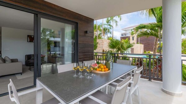 Luxe Breeze is a charming apartment located in the Blue Bay Curaçao Golf & Beach Resort. The apartment features two comfortable bedrooms with ensuite bathrooms. The sliding doors allow the living room and terrace to become one flowing living space flooded with natural light.