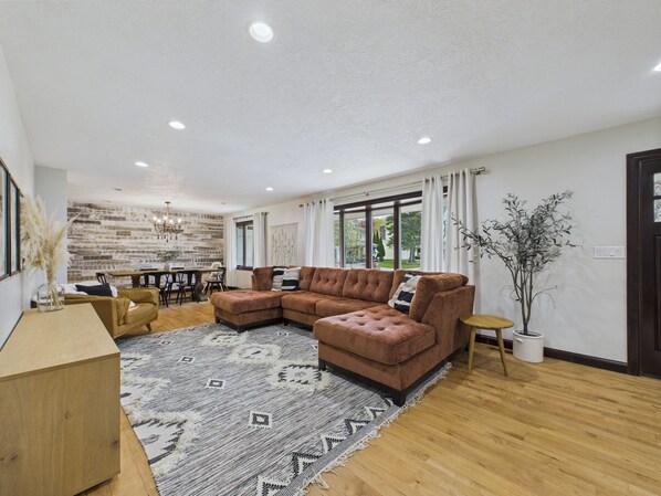 A truly beautiful house, with plenty of space for everyone to play games and chat. We had a wonderful time and were able to feed everyone easily in the large kitchen and dining area. I took away one star because there is slight room for improvement: I feel they need to add some user guides for the technology: the induction stove, thermostats, tvs, and theatre all had learning curves with no guidance. We were unable to get the upstairs tv to work, and luckily had an A/V specialist on hand that was able to help with the projector that kept turning off. So an easy improvement would be to add some guides to the binder and replace low batteries, if needed. Otherwise we had a wonderful time!