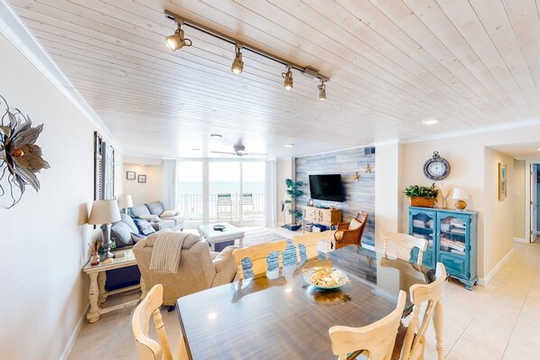Beachfront condo with ocean views, pool, tennis, gym, balcony