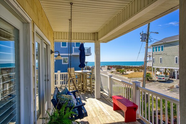 Dog-friendly beach-view home w/wraparound deck, screened porch and fenced yard