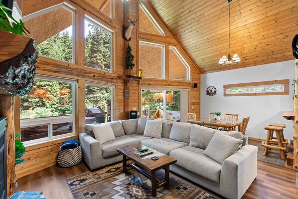 Step inside this multi-level cabin and discover cozy wood interiors, abundant natural light, and everything you need to relax and recharge.