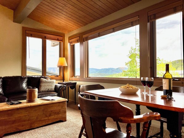 Serenity At Snowmass is newly renovated (Fall 2025), boasting an expansive, open concept living room/kitchen/dining space making for excellent group interaction. This is a 3rd floor, corner condo which allows for ample windows, lots of natural light, and beautiful views!