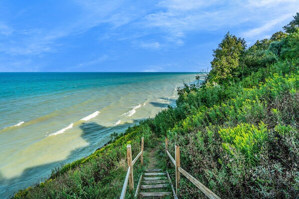 Beach Access: Great Lakes Escape has a private beach accessible from the trail on the lakefront side of the home
