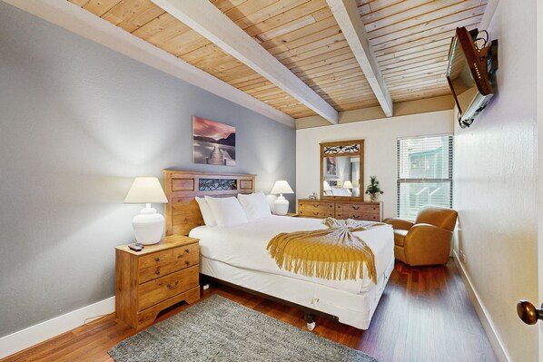 Overlooking a tranquil courtyard, your two-bedroom with loft townhome boasts vaulted ceilings, a gas fireplace, and hardwood floors in the living room and bedrooms. The full kitchen is well-equipped for prepping your favorite recipes, and there’s plenty of space to gather for mealtime, board games, and puzzles between the living and dining areas. Step out on the dining balcony for a breath of fresh mountain air anytime.