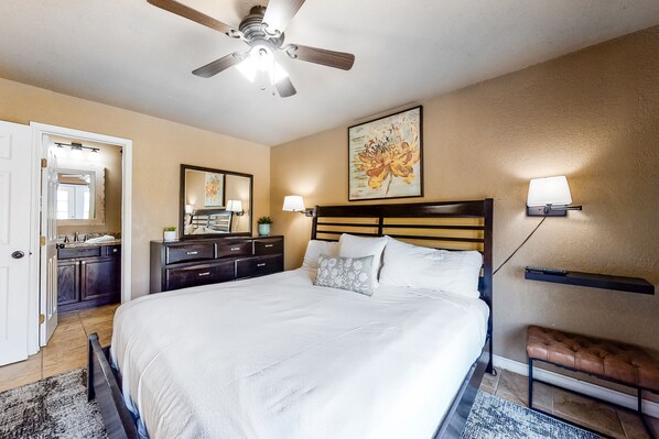 Dette feriestedet, sammen med mørke møbler med lys, floral dekor, er moderne og elegant. En åpen planløsning holder alle komfortable når de er samlet, og underholdningsfasiliteter inkluderer kabel, WiFi og en DVD-spiller med et utvalg av filmer i hjemmet.