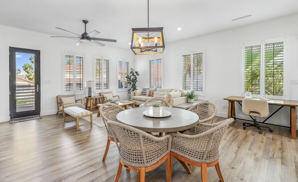 We stayed at this home with my two sons and several of their friends. The layout of the home was ideal for our purposes. The first floor provided a perfect area for the boys to hang-out in while swimming and playing their video games, and each bedroom had its own bathroom which allowed everyone to enjoy some privacy without disturbing one another. The home is professionally managed, and the staff/owner were very responsive to any minor issues or questions that arose during our stay. Many thanks for an enjoyable stay!