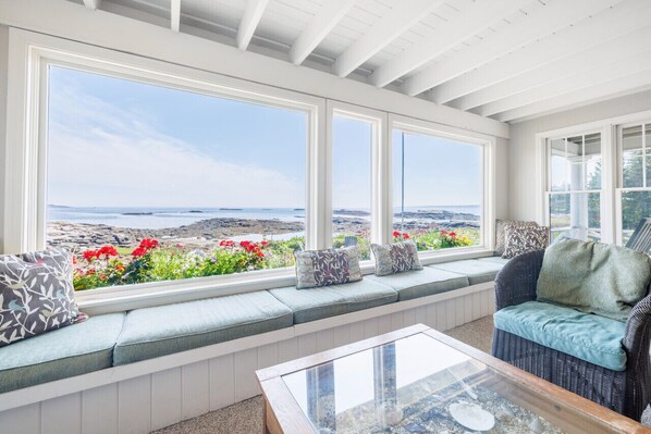 Relax and unwind in this spacious and peaceful oceanfront setting just minutes from fine dining, hiking trails, shopping, and downtown Boothbay Harbor.