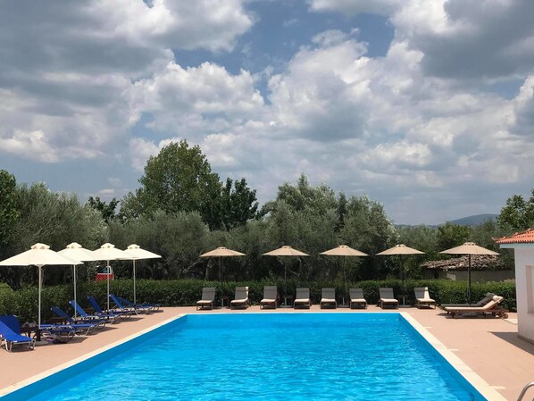 Campingplass med sesongbasert utendørsbasseng og restaurant i Sparta