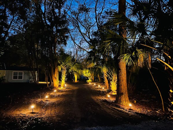 You will be tucked away down a private driveway in half an acre of wooded grounds. There is also another rental house on property. The tiny house is self check-in with keypad access. Palm Cottage is a great base for all of your needs - a night, two night minimum on weekends, or get better rates for weekly or monthly stays.