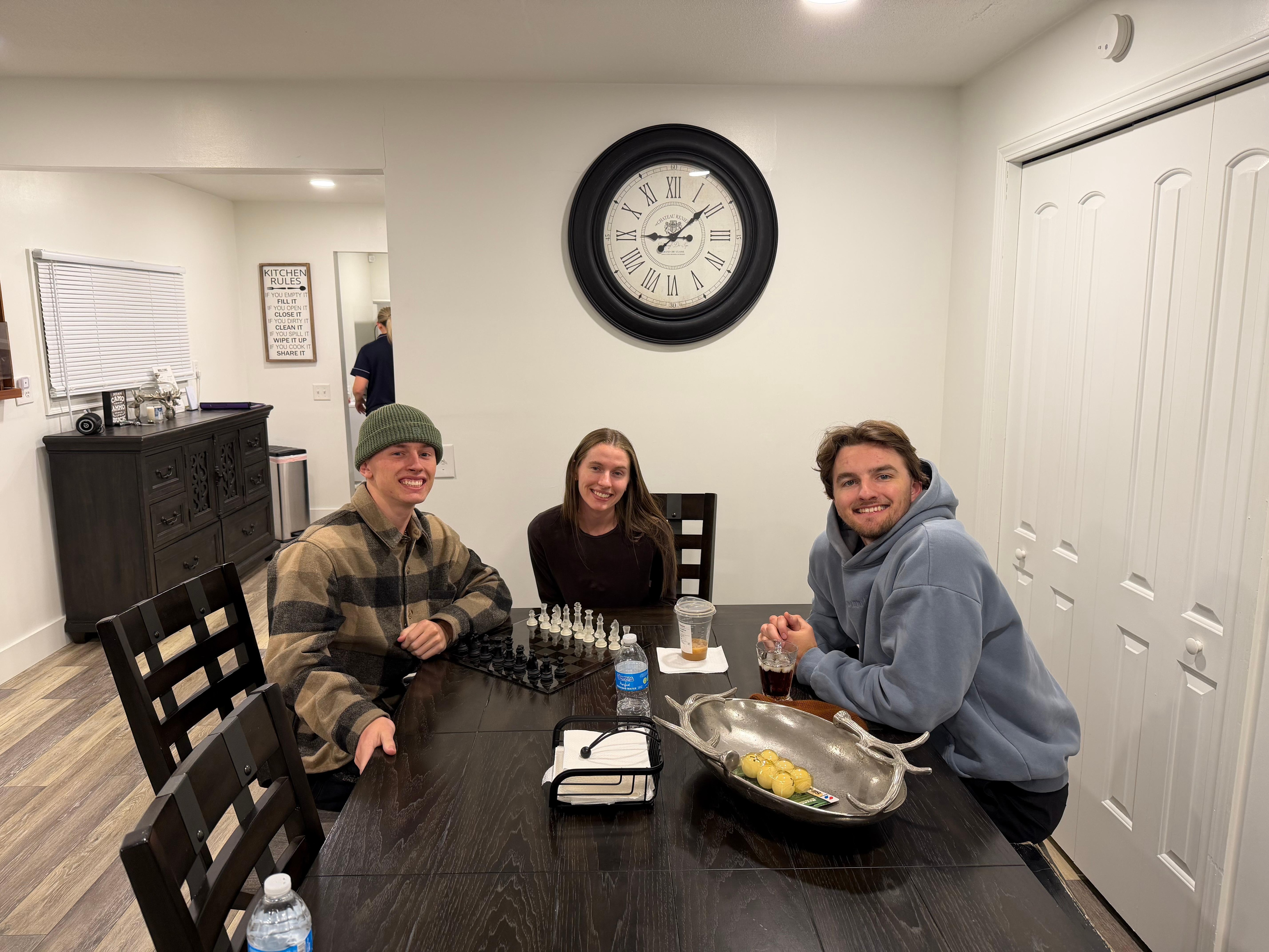 5 adults (parents children) - we had everything we needed for an comfortable stay. We were there visiting other family and this was a nice home base to kick back at the end of the day, cook a meal, and decompress. Well stocked of items we didn't even know we needed (like foil) - nice to have for the one or two sheets we needed. We flew to the area so did provisioning while we were there and it made it easy to not have to buy everything. Plenty of pots and pans, coffee and tea. The location is a bit remote, but easy to get around in this area. While we are not hunters, the land and the home set up perfectly. Charming and clean and the host was excellent and checked in to see if we needed anything. Pleasant experience!