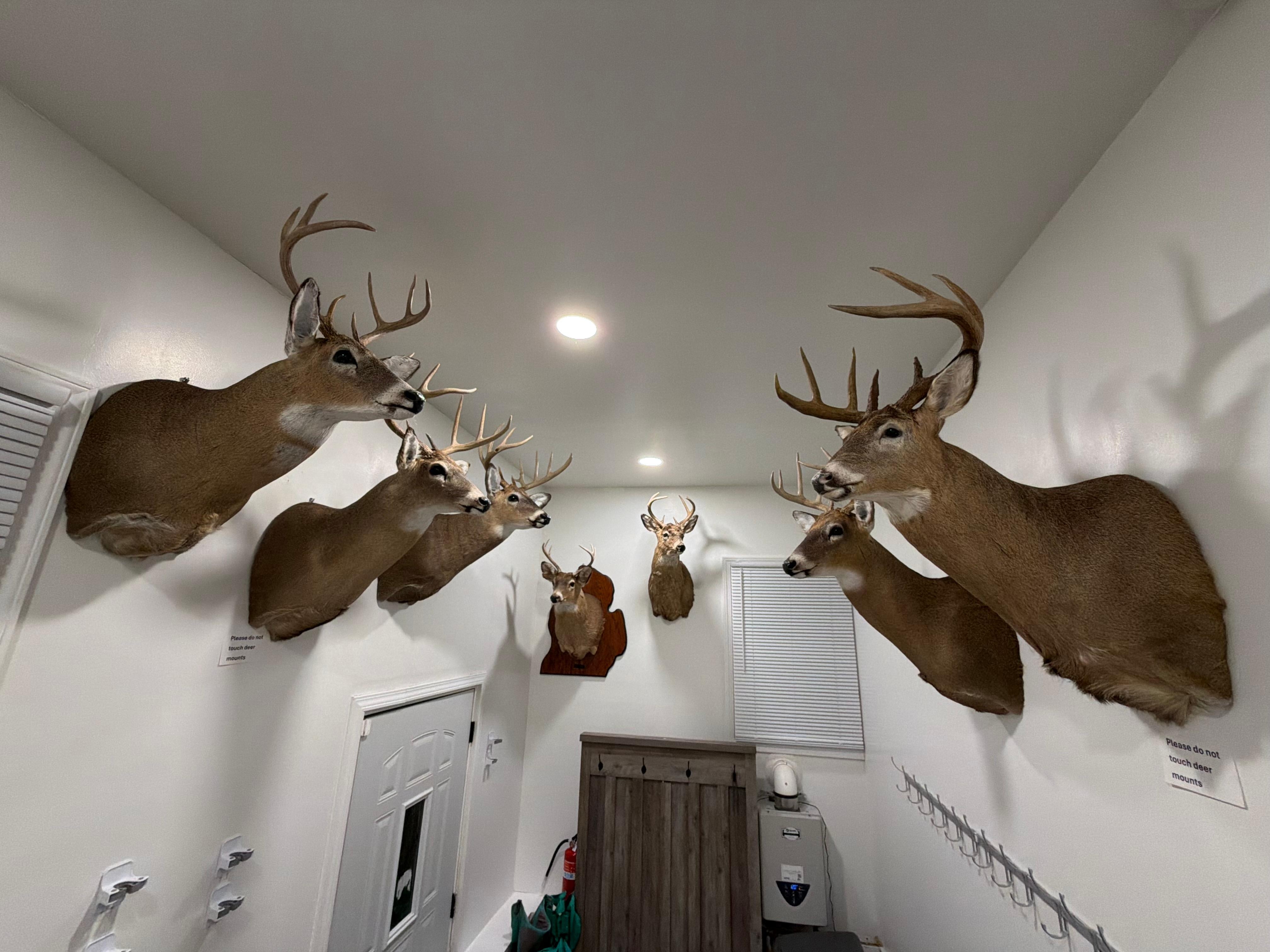 “No cameras inside home. Only outdoors. One camera at front door. One camera at side door deck. One camera at back rear door. Two cameras on pole barn one in front side pointing towards home and driveway and one more at back side pointing at ax throwing and shooting range. As well as several trail cameras on trails to view wildlife ”