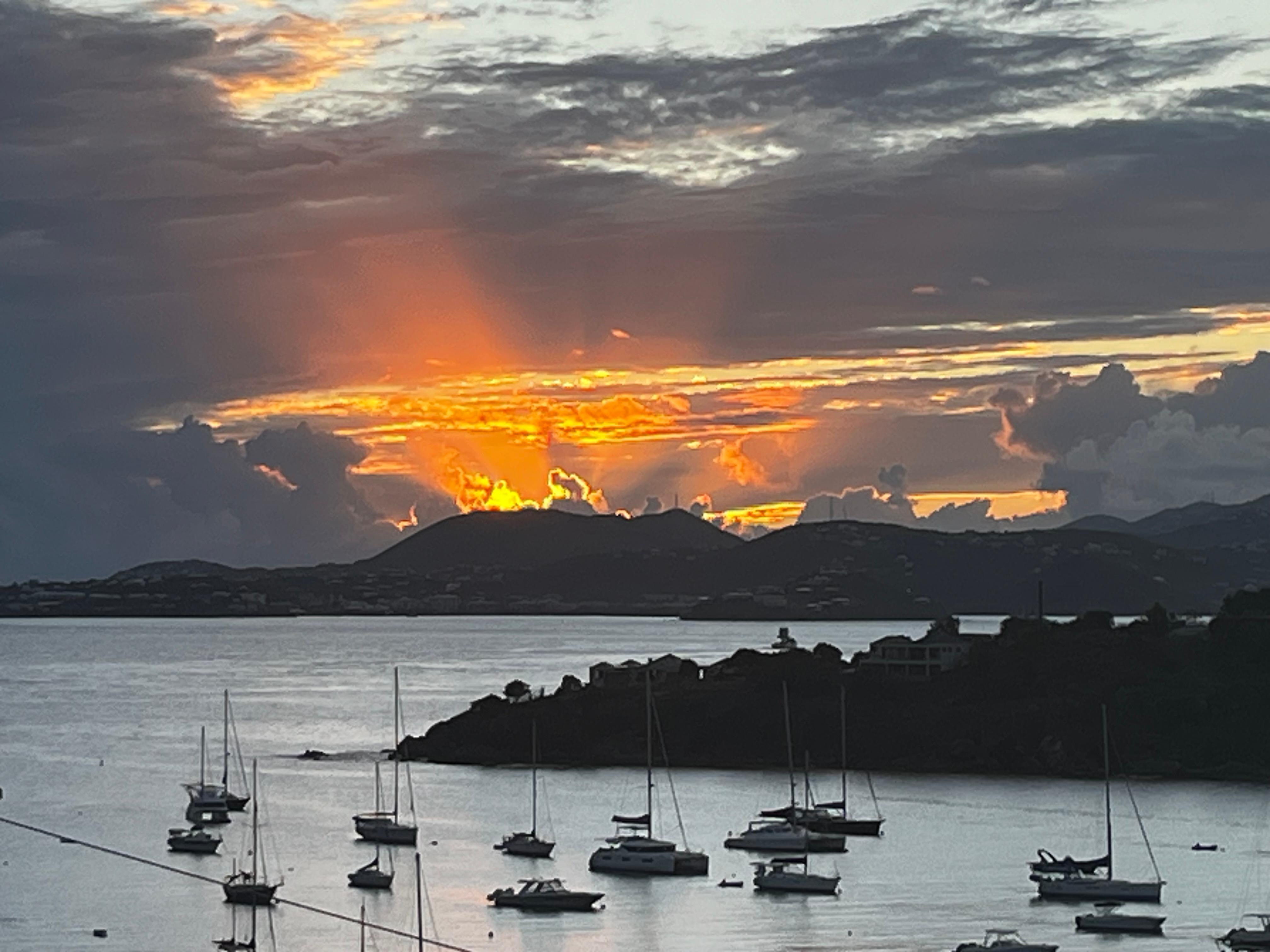 -The open-air living room and kitchen blend indoor and outdoor spaces, inviting the gentle island breezes to flow through. Outside, your private oasis includes a pristine pool and al fresco dining area, all with breathtaking views of Chocolate Hole Bay and Great Cruz Bay. As the sun sets, the sky ignites in a mesmerizing display of color, making each evening unforgettable. With continuous luxury renovations and now available for the first time, villa St Somewhere offers a vast and serene escape.