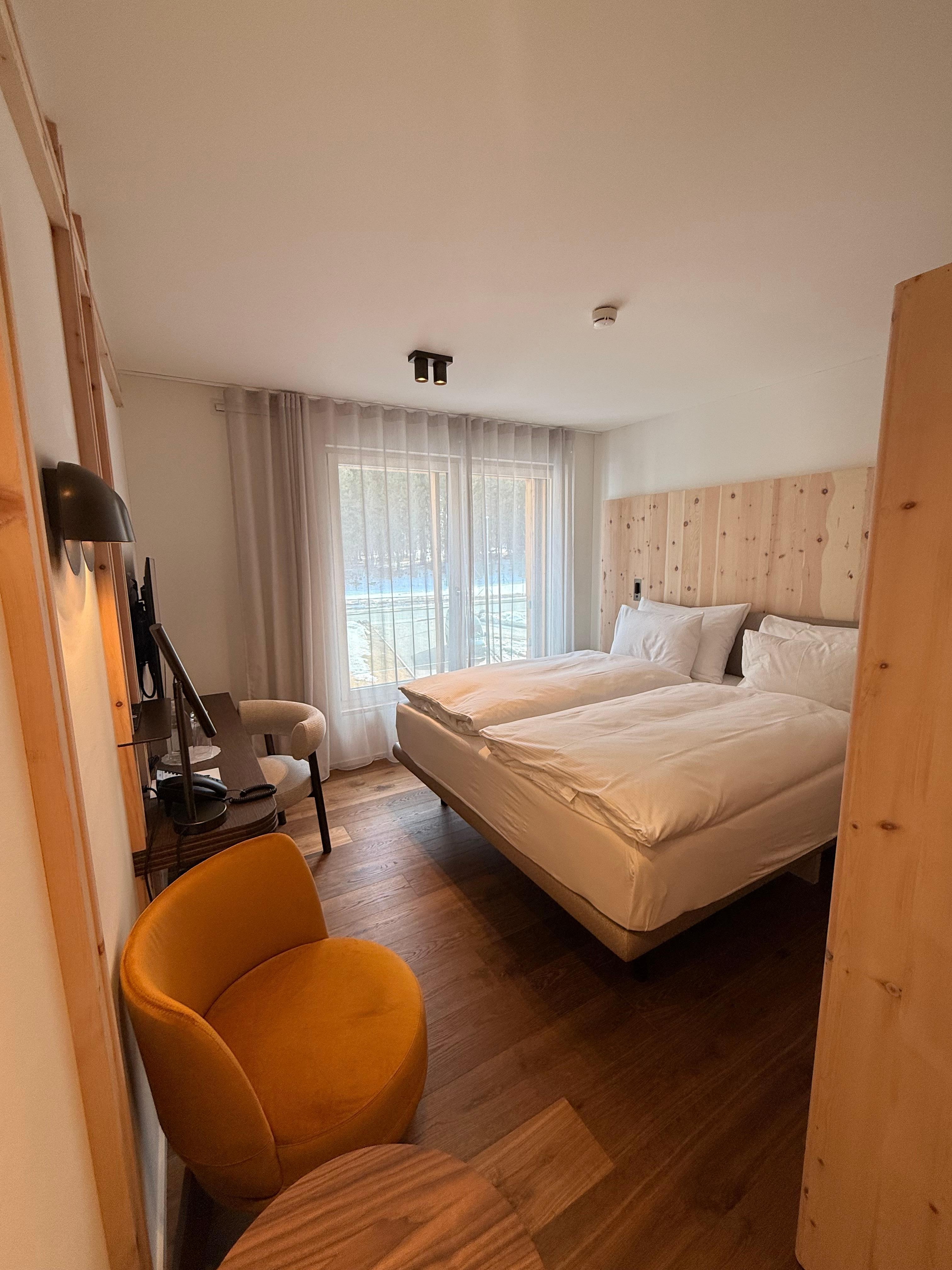 Das Zimmer war sehr schön und sauber. Das Frühstück war auch super. Leider war am Anreisetag die Rezeption nicht gerade hilfsbereit und freundlich. Außerdem haben Sie für das Ausleihen eines Steckdosenadapters 20 CHF gebucht. Die man zwar wieder zurück bekommt, aber das ist kein gutes Gefühl. Die Lage ist nicht gerade zentral, der Weg zu St. Moritz Dorf ist sehr lang.