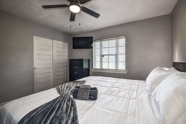 ✅Master Bedroom: The master suite includes a Queen-sized bed, a Smart TV, a large closet, and a private bathroom with a walk-in shower for a luxurious experience.
