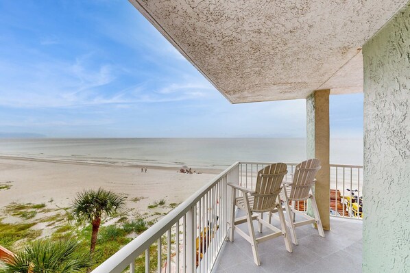 Cap off sun-kissed days at the beach by soaking up breathtaking sunsets! This contemporary coastal condo boasts a wraparound balcony with sweeping views of the shimmering Gulf shores.