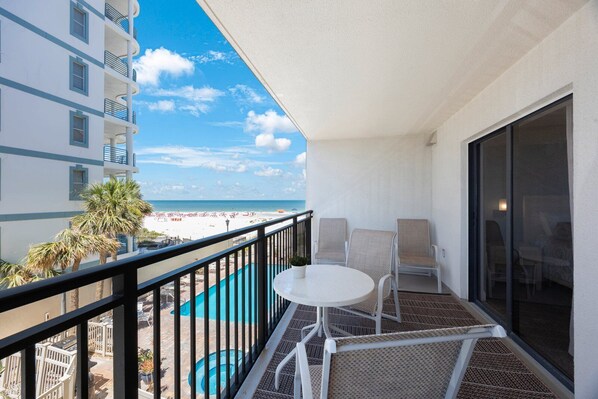 • Relax on your balcony with a view of the Gulf: Step out onto your private balcony and enjoy a lovely view of the sparkling Gulf waters. It's the perfect spot to sip your morning coffee or unwind after a day of adventure, with the soothing sounds of the ocean in the background.