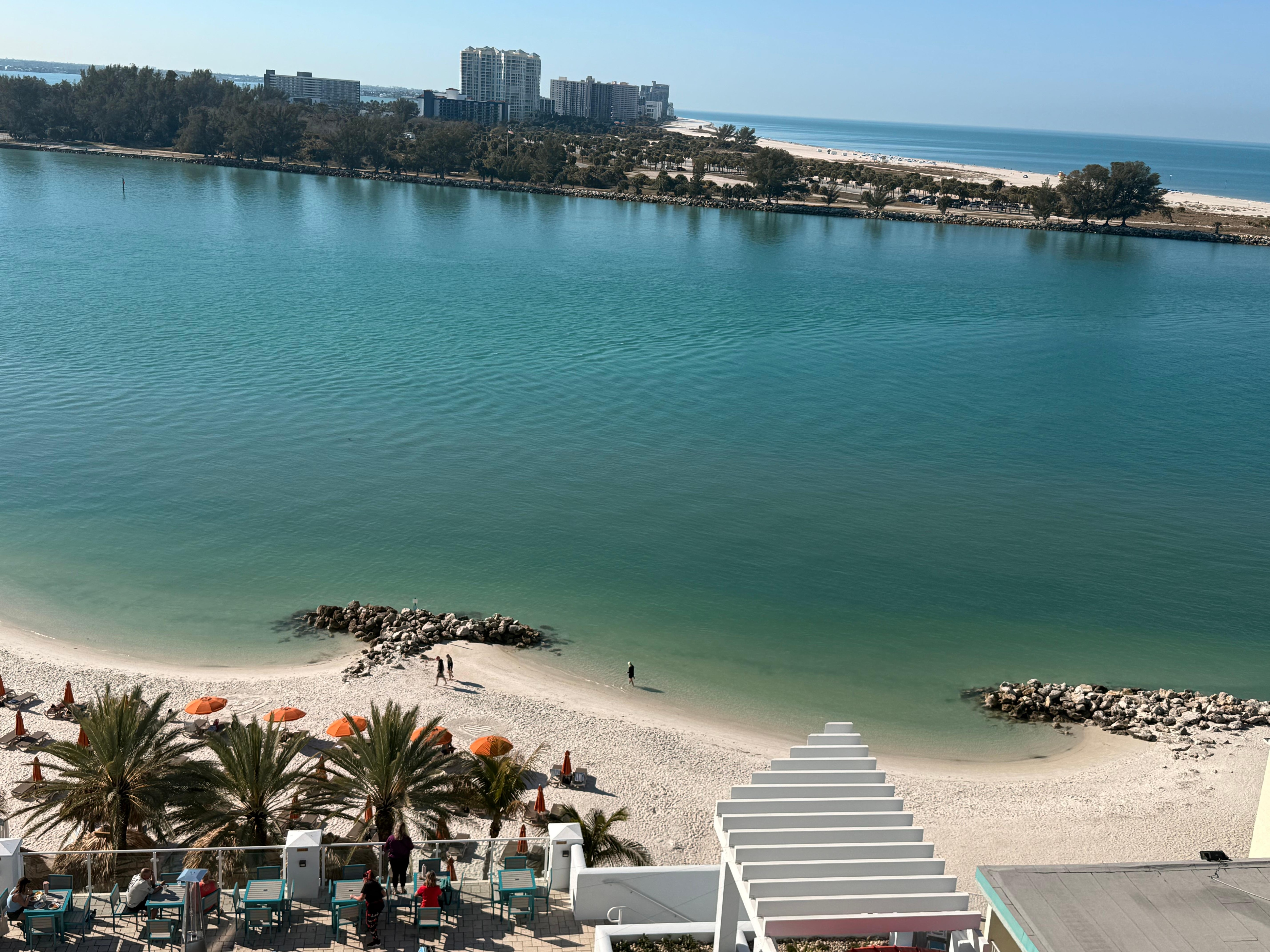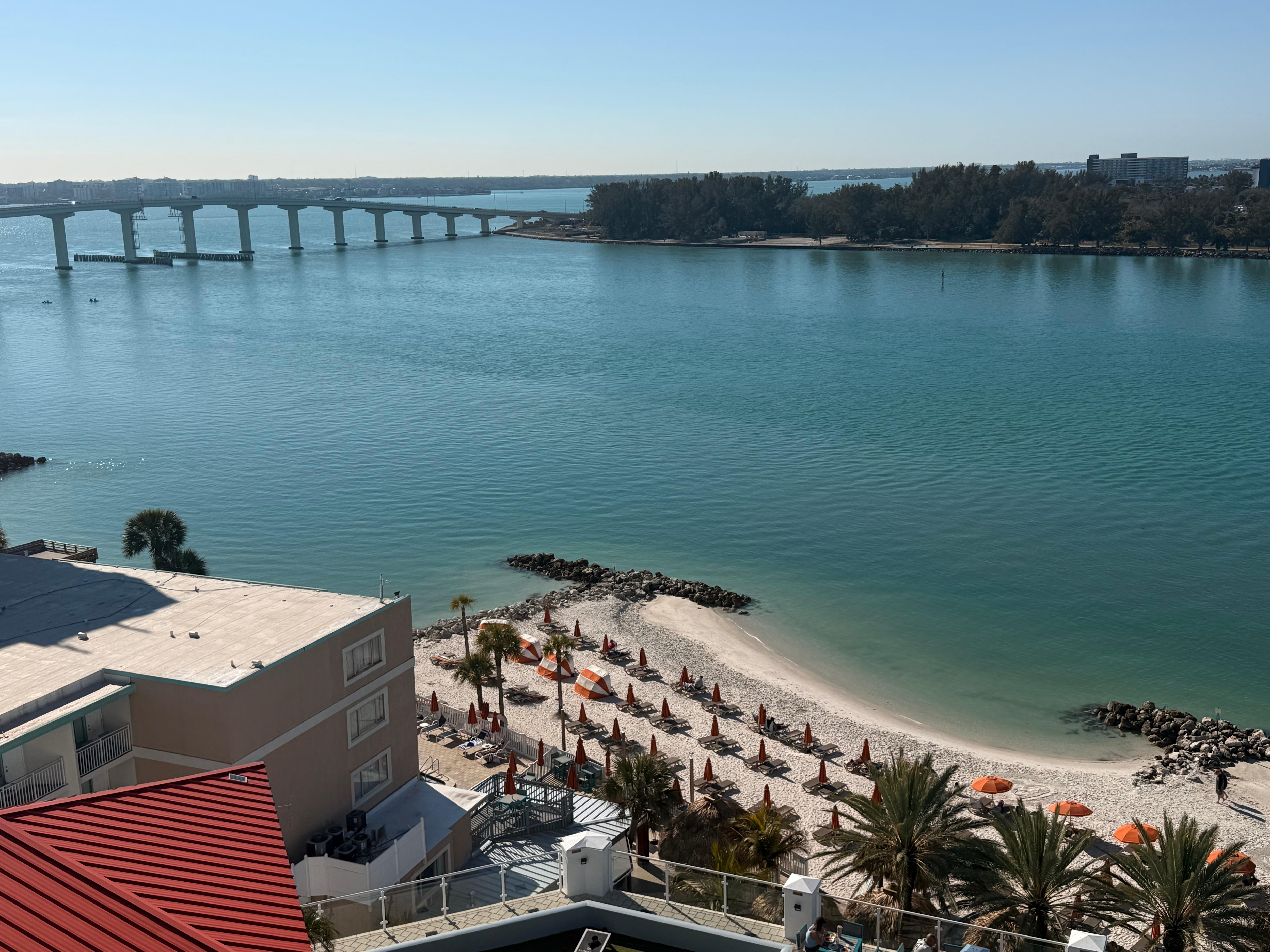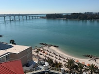 På en privat strand med utendørsbasseng, nær Sand Key Park